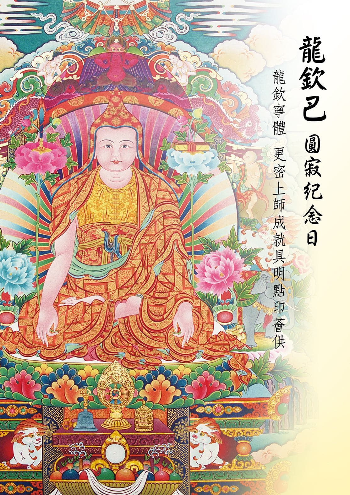 尊者誕生於西元1308年,圓寂於1364年,藏曆12月18日,為大遍知龍欽饒絳尊者圓寂紀念日。